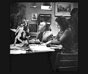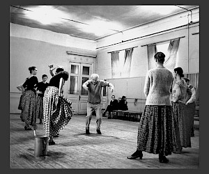 Behind the Porous Curtain, curated by Regina Khidekel, showcases 18 works by Anatoly Pronin. These works capture the Soviet period of artistic inspiration of the 1970's, as the post-Stalin Thaw opened a pathway through the iron curtain for modern Western art and culture to enter the Soviet Union. Most of Pronin's photographs were shot behind the theater curtain, capturing the private and almost intimate world of rehearsals with iconic figures such as George Balanchine, Roland Petit, Laurent Terzieff, and Marcel Marceau. The theater tours displayed in this exhibit ended the isolation of the Soviet art scene, reviving names erased from history and introducing new ideas and methods. One of the central subjects of this collection is Leonid Jakobson, a non-conformist choreographer who created masterpieces despite strict state control, transforming classical ballet technique into modern dance lexicon. Anatoly Pronin has pursued photography since childhood.