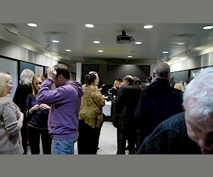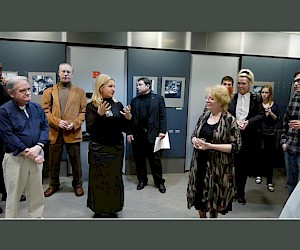 Выставка За приоткрытым занавесом, организованная директором и куратором Русско-Американского Культурного Центра, Региной Хидекель, предствляет 18 работ Анатолия Пронина. Эти работы охватывают своеобразный аспект жизни советского театра 1970-х годов, когда в результате оттепели, железный занавес начинает приоткрываться, по крайнем мере, в одном направлении, и в столичные города приезжают на гастроли ведущие западные театры и их легендарные звезды. Эти театральные гастроли подтачивали стену изоляции, в которой находилась советская сцена, возвращая вычеркнутые имена и заряжая новыми идеями. Большинство фотографий Пронина сняты по ту сторону театрального занавеса, запечатлев моменты общения и почти интимный мир репетиций таких знаковых фигур, как Джордж Баланчин, Ролан Пети, Лоран Терзиев, Жан-Луи Барро и Марсель Марсо. Одной из центральных фигур выставки также стал Леонид Якобсон, хореограф -нонконформист, создававший шедевры несмотря на жесткий контроль государства. Якобсон "перевел" классическую балетную технику на язык современного танца, открыв новые перспективы современного балетного театра. Анатолий Пронин с юности был увлечен фотографией. После окончания Ленинградского государственного университета, он работал в ленинградских издательствах и журналах до переезда в США в 1981 году. Его работы входят в коллекции Государственного Русского музея, музея Метрополитен, и Библиотеки Конгресса, и т.д. Он был удостоен многочисленных премий, в том числе серебряной медали на международной выставке Photo 1971 в Берлине. Настоящая экспозиция является частью серии "Фрагменты из прошлого", реализуемой Русско-Американским Культурным Центром в сотрудничестве с Институтом Гарримана, целью которой является создание мозаики исторических событий, связанных с русской художественной культурой в Советском Союзе и на Западе.