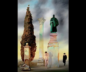 "The pedestals of so-called heroes from history totter in the vast expanses of these landscape panoramas. Sharp irony shows through the play with historical epochs, which presages the ambivalent perspectives that touch on these new interconnections. The quality of painting, which is on the level of the Old Masters, further reinforces the persuasiveness of these works. Here ideology is not proclaimed; instead monuments are overturned, and the clay colossuses of cruelty, willfulness and power are subjected to ridicule". - Renee Schipp, Italian Culture Institute, Berlin, 1997