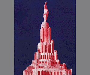 On May 10th 1933, after the third round of the competition, the Council for Construction adopted as the basis for the project a design by architect Boris Iofan. This specified a 3-tier tower accentuated by dynamic, vertical rib-like pylons and topped by a statue of the ‘Liberated Proletarian’. Stalin gave orders that the building should be topped by a sculpture of Lenin. In the process the number of tiers was increased to five and the building’s total height was now to be 415 metres (seven metres higher than the Empire State Building). The sculptural competition was won by Sergey Merkurov, yet another favourite of the Leader: “At the command of Comrade I.V. Stalin the sculptor depicted Lenin with arm stretched out in front, in a pose depicting a call to action. The statue of Lenin (100 metres high) crowning the Palace of the Soviets will be the largest sculpture in the world” (Dvorets Sovetov, Moscow, 1939).