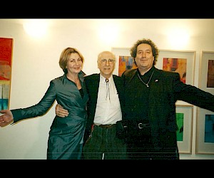 January 2002Stephan Soreff and Athos Zacharias are New York art insiders who came to the scene when art was evolving from Abstract Expressionism into the movement of Pop Art. Through their work both artists were able to find a space in the breach and develop their own styles. They have been friends for more than thirty years, participating at the "Artists Club" and as members of the artists cooperative movement on Tenth Street in the late fifties and early sixties. Zacharias is a painter and Soreff a sculptor of conceptual objects, sharing a common set of artistic values and beliefs. Both artists were fortunate to know, to work and to have conversation with artists such as Rothko, Esteban Vincente, Phillip Pavia, Nick Carone, and others who later became known as members of the New York School. Soreff has held two exhibitions at the Betty Parsons Gallery, the first gallery to show the New York School. Athos Zacharias stepped into the art world in the mid fifties as Elaine and Willem de Kooning's very first assistant. In a letter of recommendation of 1965, Willem de Kooning referred to Zacharias as "one of us". Zacharias' use of the physicality of paint as a building material of expression, combined with ready-made objects and a fascination for the emergence of pop art led to the development of expressionist pop art. Shifting between generations, Zacharias found a new inspiration with the development of electronic art. His recent works, influenced by experiments with computer graphics, are preoccupied with architectural motifs and multi-reproduced images. On display will be a series of paintings and computer generated prints, each image is painted in a different gamma, reminiscent of Andy Warhol's bright candy color multi-productions. Stephan Soreff displays a sense of irony and playfulness that unites him with Zacharias. They share a fascination with provocative speculations about art and the future. Soreff was ahead of his time when he began distributing his visionary art schemes as AGAR (Avant Guard Art Review) in the 1970s, "blending words and drawings in a compelling way". He works with found objects transforming real into imaginative, such as creating a conceptual installation of radio-sets mocking the age of information. His concepts include haired shoes or an illuminating face, work that evolves the mental element. Critics have called his works "engagingly hermetic" and "an artistic barometer of cultural directions".
