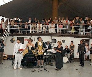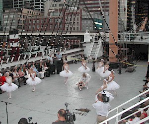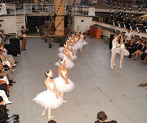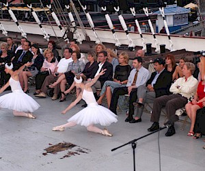 An exciting and glamorous evening, aboard New York City's landmark ship the Peking, recalling the grand celebrations of the White Nights in St. Petersburg, Russia, the Venice of the North. Set against panoramic views of Manhattan's skyline, costumed personalities from Russia's great historic past welcome you aboard a dramatic and illuminated deck where a night of art and entertainment beckons.
