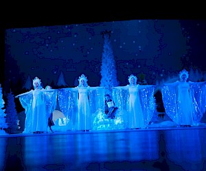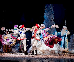 Детский новогодний мюзикл «Матушка-Метелица» идёт на русском языке с английскими субтитрами. Сказочная история семьи Деда Мороза, чарующие зимние декорации, нарядная Ёлка и сладкие, красивые русские новогодние подарки.