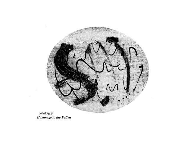 The "Homage to the Fallen" series, begun spontaneously on September 11th, 2001, is composed entirely of paste drawing on acid-free paper. John Digby has worked exclusively in black and white paper collage for more than twenty-five years. He is well-known for his commitment to archival materials. The series of 20 collages (20 symbolizing the catastrophic date 9+11) uses color and shape as an expression of the emotions and reactions of that day. The movement between light and dark, of flat and raised surfaces merge to form a window of expression into the ordeal of the victims of that day.