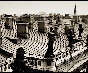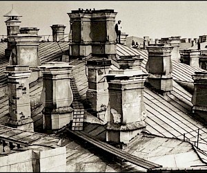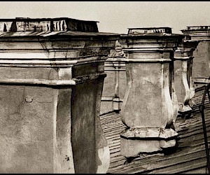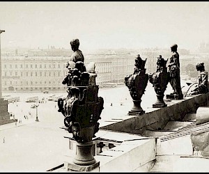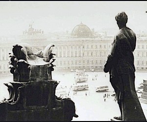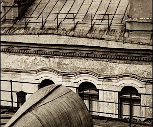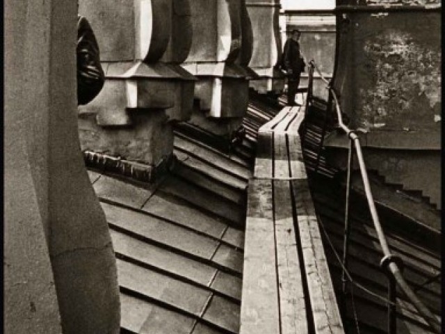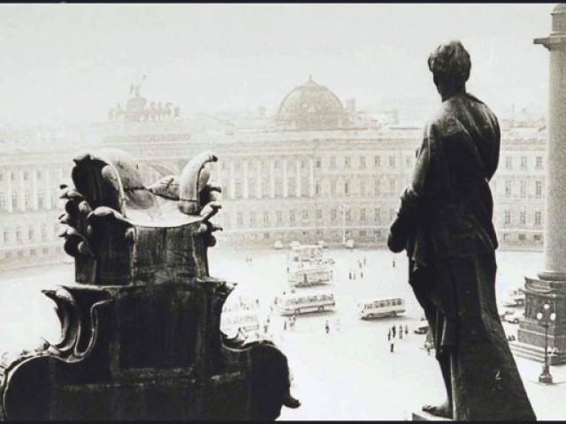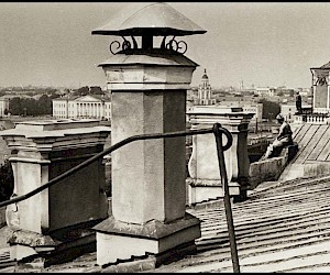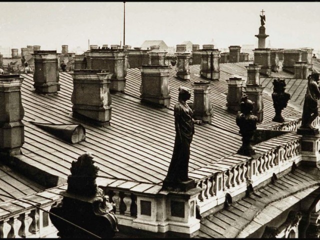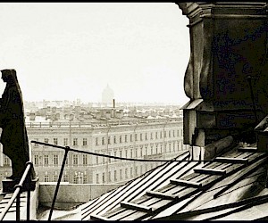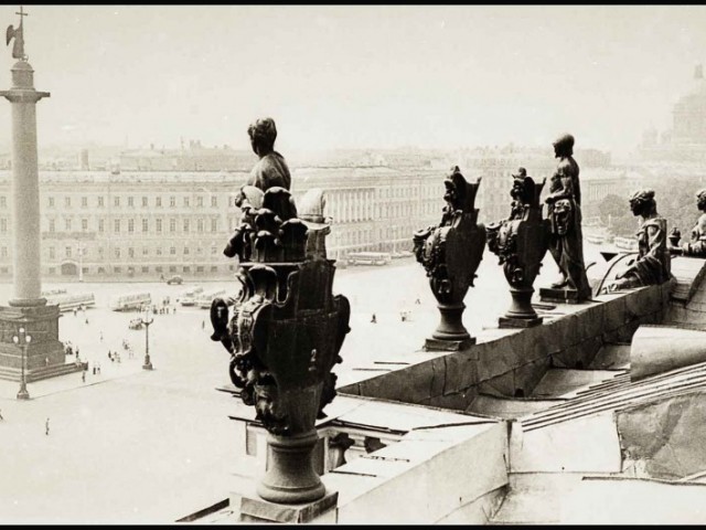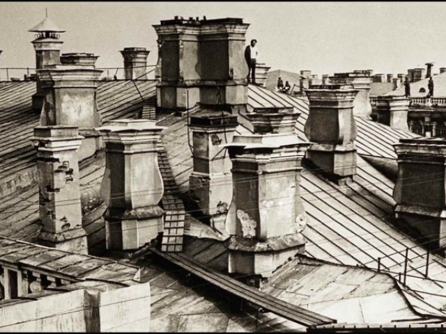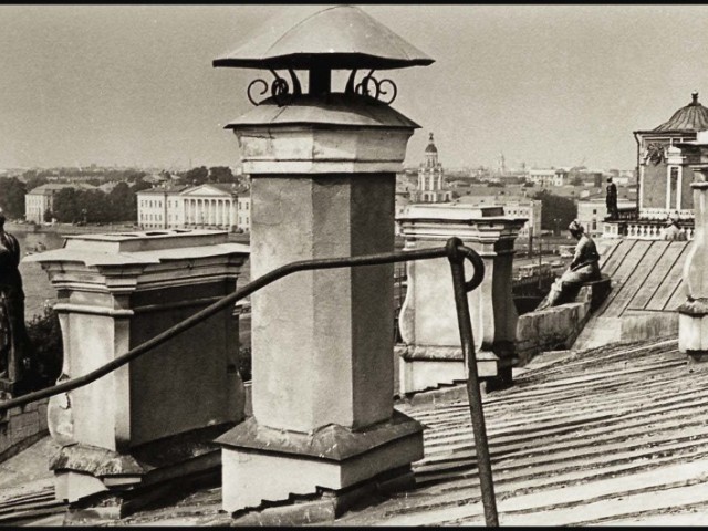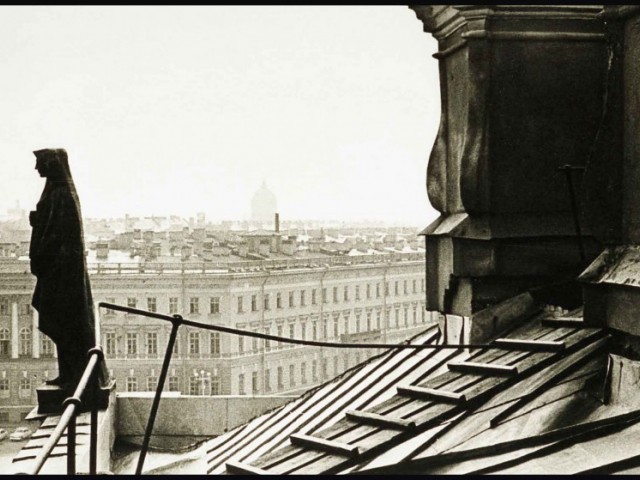 As an impressionable young man and an aspiring cameraman/photographer I had had an episode that was as close to the artist’s epiphany as it ever gets, and it was definitely at the point of high elevation. It happened on the roof of the State Hermitage Museum, where our skeleton creative crew was location scouting for a feature film about the museum and its curatorial staff during the Siege of Leningrad. Part of the film was dedicated to the scenes of fire wardens watching for the enemy bombers – a venerable duty of the citizens, performed by the museum staff on the roof of the Hermitage. The roof setting turned out to be something that went well beyond unusual or exotic. It was my first encounter with perfection as I understood it then. The enormous and seemingly endless unevenly ribbed space of the roof itself, that snaked, bent and twisted more than anything Frank Gehry can do; its wide green caterpillar punctuated at many points by blackened bronze and stone figures, chimneys with sooty sculptured decorations, windows, flagstaffs even a small chapel and a guard booth etc…The blindingly bright gorge of the Palace square way down below and the lace of the General Staff Building broken glass dome with a bronze Nike chariot in front…This was the city that I have never seen before, and by a lucky circumstance was placed at the level literally forbidden ( at the time) to all others…To add to that an unusually high key diffused lighting coming from habitually overcast, but bright and sunny on that day sky, with enough haze in the air to turn it into a gigantic photographic light box with diffused shadow-less glow allowing one to shoot in any direction. There was also an element present that turned out to be very important for these notes and the project - the elevation. The elevation of the camera (even to 75-80 feet) in the case of the roof of the Hermitage brought about a new dimension to my whole concept of photographic city landscape. These additional 80 feet extended the skyline upward and deepened the foreground, making the point of view as close to that of a bird or, or a dragonfly or, as I thought then, God…