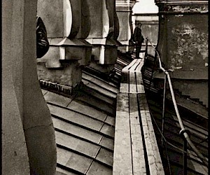 Getting up on a skyscraper roof or elevated terrace is not unlike going through the looking glass where the time reverts to a point a hundred or more years before, one’s eye is glued to the sights unseen and unexpected visions from the past and present, while one’s mind, completely humbled and awed by this avalanche of new sensations is trying to absorb it all. Standing at the higher elevation of a skyscraper, one could see from there what the building, if it was alive was quietly observing for decades, almost becoming the eyes of the building-being.