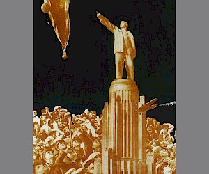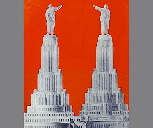 On May 10th 1933, after the third round of the competition, the Council for Construction adopted as the basis for the project a design by architect Boris Iofan. This specified a 3-tier tower accentuated by dynamic, vertical rib-like pylons and topped by a statue of the ‘Liberated Proletarian’. Stalin gave orders that the building should be topped by a sculpture of Lenin. In the process the number of tiers was increased to five and the building’s total height was now to be 415 metres (seven metres higher than the Empire State Building). The sculptural competition was won by Sergey Merkurov, yet another favourite of the Leader: “At the command of Comrade I.V. Stalin the sculptor depicted Lenin with arm stretched out in front, in a pose depicting a call to action. The statue of Lenin (100 metres high) crowning the Palace of the Soviets will be the largest sculpture in the world” (Dvorets Sovetov, Moscow, 1939).