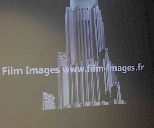 On the screen, as a background, the video about the sculptor Sergei Merkurov, who worked in his studio in 1938 on the models of the Palace and sculpture of Lenin, played silently, presenting an additional element of temporary authenticity in the interpretation of the event. (Merkurov – Palace of the Soviets) via YouTube