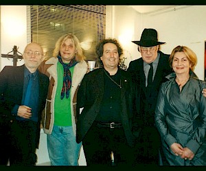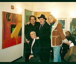 January 2002Stephan Soreff and Athos Zacharias are New York art insiders who came to the scene when art was evolving from Abstract Expressionism into the movement of Pop Art. Through their work both artists were able to find a space in the breach and develop their own styles. They have been friends for more than thirty years, participating at the "Artists Club" and as members of the artists cooperative movement on Tenth Street in the late fifties and early sixties. Zacharias is a painter and Soreff a sculptor of conceptual objects, sharing a common set of artistic values and beliefs. Both artists were fortunate to know, to work and to have conversation with artists such as Rothko, Esteban Vincente, Phillip Pavia, Nick Carone, and others who later became known as members of the New York School. Soreff has held two exhibitions at the Betty Parsons Gallery, the first gallery to show the New York School. Athos Zacharias stepped into the art world in the mid fifties as Elaine and Willem de Kooning's very first assistant. In a letter of recommendation of 1965, Willem de Kooning referred to Zacharias as "one of us". Zacharias' use of the physicality of paint as a building material of expression, combined with ready-made objects and a fascination for the emergence of pop art led to the development of expressionist pop art. Shifting between generations, Zacharias found a new inspiration with the development of electronic art. His recent works, influenced by experiments with computer graphics, are preoccupied with architectural motifs and multi-reproduced images. On display will be a series of paintings and computer generated prints, each image is painted in a different gamma, reminiscent of Andy Warhol's bright candy color multi-productions. Stephan Soreff displays a sense of irony and playfulness that unites him with Zacharias. They share a fascination with provocative speculations about art and the future. Soreff was ahead of his time when he began distributing his visionary art schemes as AGAR (Avant Guard Art Review) in the 1970s, "blending words and drawings in a compelling way". He works with found objects transforming real into imaginative, such as creating a conceptual installation of radio-sets mocking the age of information. His concepts include haired shoes or an illuminating face, work that evolves the mental element. Critics have called his works "engagingly hermetic" and "an artistic barometer of cultural directions".