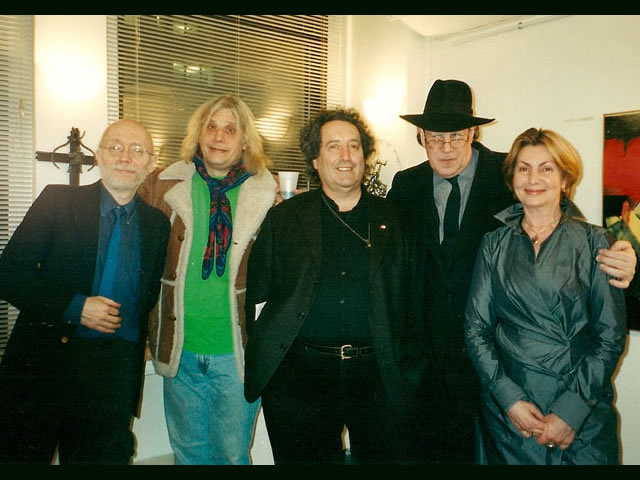 January 2002Stephan Soreff and Athos Zacharias are New York art insiders who came to the scene when art was evolving from Abstract Expressionism into the movement of Pop Art. Through their work both artists were able to find a space in the breach and develop their own styles. They have been friends for more than thirty years, participating at the "Artists Club" and as members of the artists cooperative movement on Tenth Street in the late fifties and early sixties. Zacharias is a painter and Soreff a sculptor of conceptual objects, sharing a common set of artistic values and beliefs. Both artists were fortunate to know, to work and to have conversation with artists such as Rothko, Esteban Vincente, Phillip Pavia, Nick Carone, and others who later became known as members of the New York School. Soreff has held two exhibitions at the Betty Parsons Gallery, the first gallery to show the New York School. Athos Zacharias stepped into the art world in the mid fifties as Elaine and Willem de Kooning's very first assistant. In a letter of recommendation of 1965, Willem de Kooning referred to Zacharias as "one of us". Zacharias' use of the physicality of paint as a building material of expression, combined with ready-made objects and a fascination for the emergence of pop art led to the development of expressionist pop art. Shifting between generations, Zacharias found a new inspiration with the development of electronic art. His recent works, influenced by experiments with computer graphics, are preoccupied with architectural motifs and multi-reproduced images. On display will be a series of paintings and computer generated prints, each image is painted in a different gamma, reminiscent of Andy Warhol's bright candy color multi-productions. Stephan Soreff displays a sense of irony and playfulness that unites him with Zacharias. They share a fascination with provocative speculations about art and the future. Soreff was ahead of his time when he began distributing his visionary art schemes as AGAR (Avant Guard Art Review) in the 1970s, "blending words and drawings in a compelling way". He works with found objects transforming real into imaginative, such as creating a conceptual installation of radio-sets mocking the age of information. His concepts include haired shoes or an illuminating face, work that evolves the mental element. Critics have called his works "engagingly hermetic" and "an artistic barometer of cultural directions".
