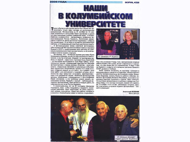 Here, in his new homeland, Shalamoff continues his work as a freelance photographer. Shalamoff's photographs are published in magazines, newspapers (The New York Times being one of them) and books.