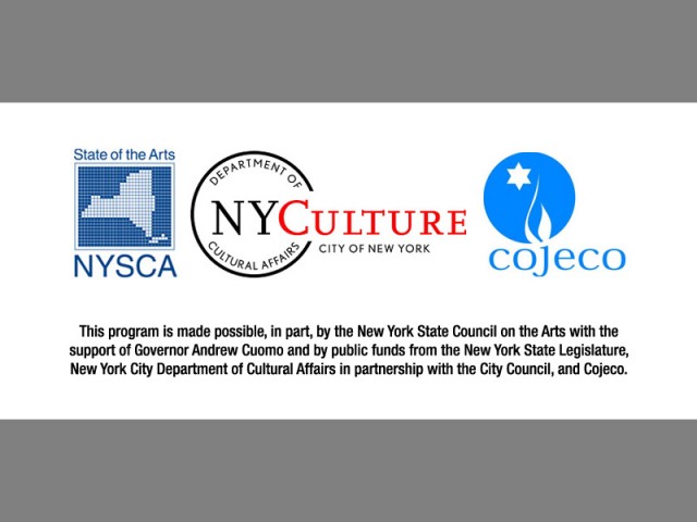 This program is made possible, in part, by the New York State Council on the Arts with the support of Governor Andrew Cuomo and by public funds from the New York State Legislature, New York City Department of Cultural Affairs in partnership with the City Council; Cojeco, the Consulate General of Israel in New York, and Investors Bank.