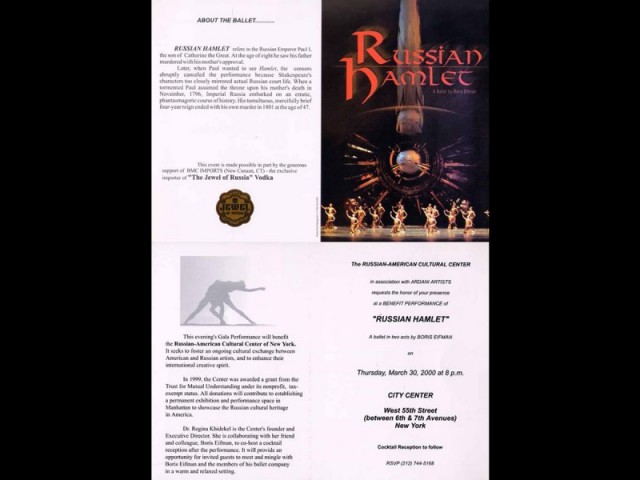 Choreographer Boris Eifman in the ballet addresses to destiny of tsarevitch Pavel I. It doesn't dramatize a well-known plot from Russian history – race for power between Ekaterina and her son - and with psychologism peculiar to it, tries to comprehend and analyse philosophically how the power deforms human relations and destroys the person, transforming the power propertied into the semimadman.