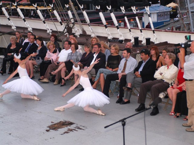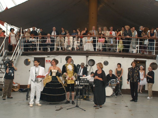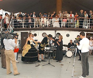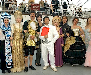 An exciting and glamorous evening, aboard New York City's landmark ship the Peking, recalling the grand celebrations of the White Nights in St. Petersburg, Russia, the Venice of the North. Set against panoramic views of Manhattan's skyline, costumed personalities from Russia's great historic past welcome you aboard a dramatic and illuminated deck where a night of art and entertainment beckons.