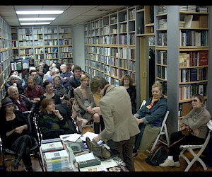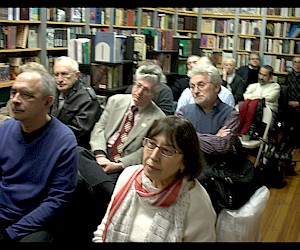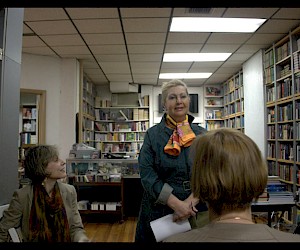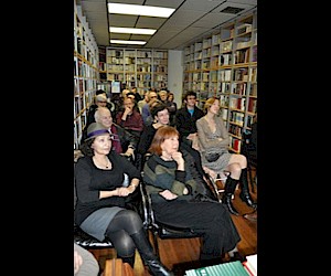 Народу в русский книжный магазин №21 – место проведения большинства встреч новой серии, в частности, тех из них, что будут проходить по-русски - пришло достаточно много, по крайней мере, свободных мест точно не было. Регина Хидекель, учредитель и директор Русско-Американского Центра и продюсер программы вечеров, рассказала об идее SLASH и представила троих участников первого вечера: Юлию Кунину , профессора Хантер колледжа, Ирину Машинскую и Григория Стариковского, и школьные учителей, и университетских преподавателей.